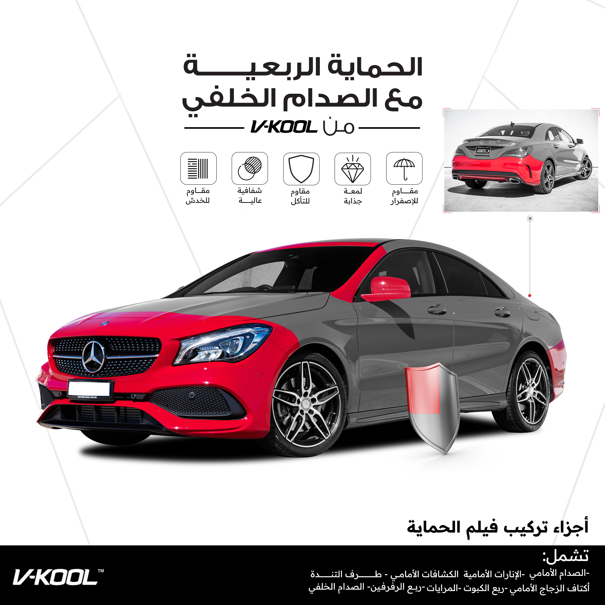 فيلم حماية في - كول حماية الجزء الامامي و الصدام الخلفي ضمان 12 سنة 6950.00 SR سعر الحزمة (غير شامل الضريبة)